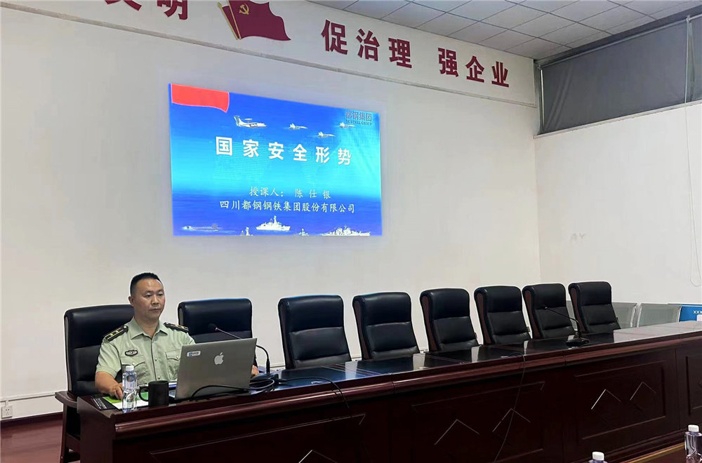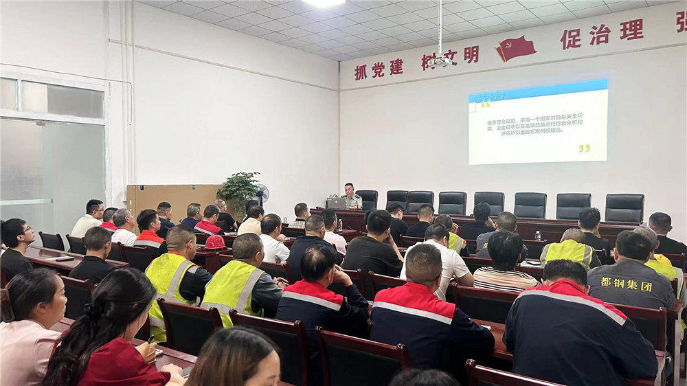 为深化员工对国家安全形势的认识,提升国防意识,冶控集团都钢钢铁于7月29日开展了一场以“深入理解和落实国家安全形势”为主题的国防教育活动。冶控集团董事、都钢钢铁总经理陈诗通,冶控集团都钢钢铁常务副总经理周涌,以及都钢钢铁中高层领导和职工代表共计70余人参与了本次国防教育活动。
